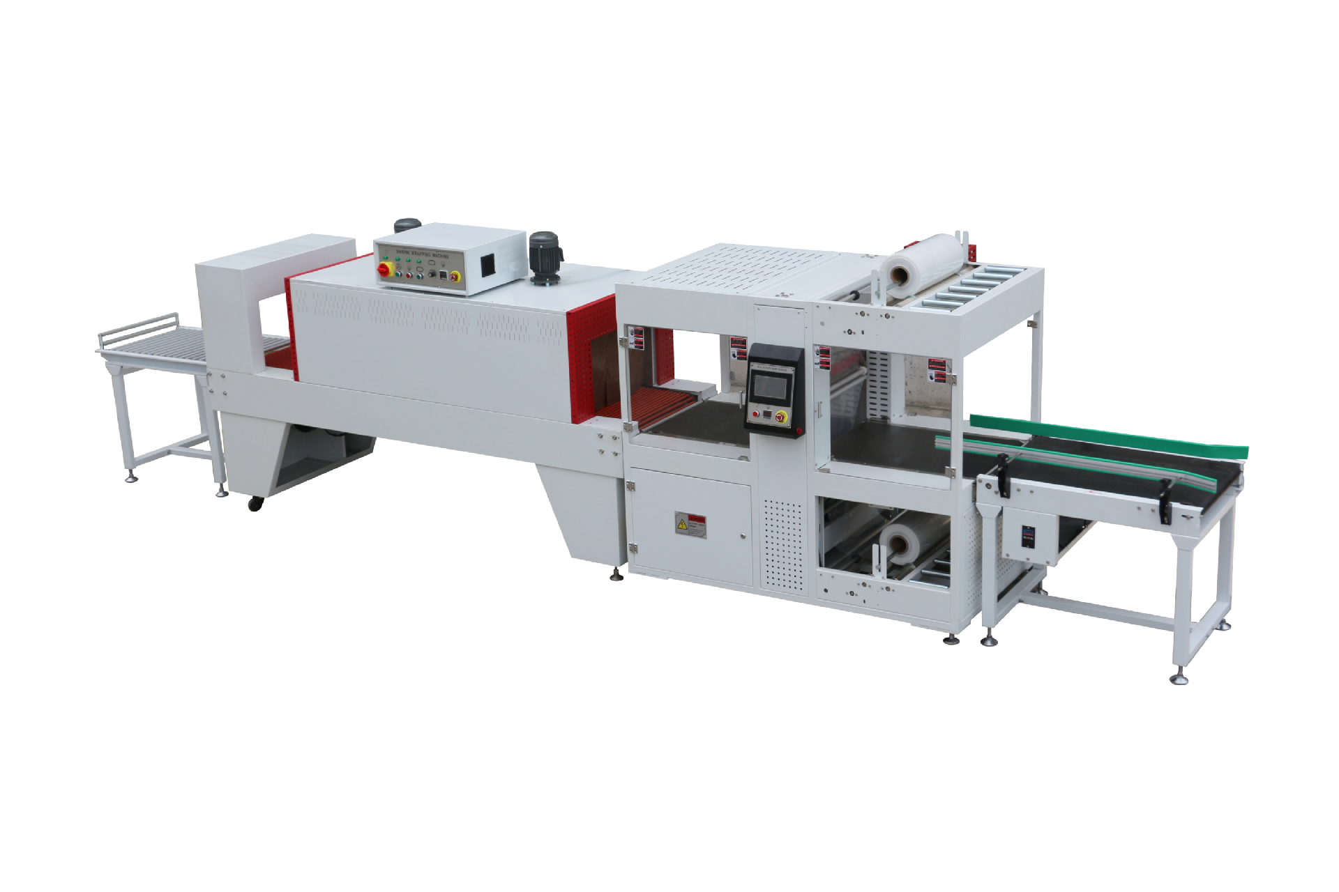 可獨立工作,也可與生產(chǎn)線對接自動進料,裹膜,封切,收縮,冷卻,定型來實現(xiàn)無人化流水作業(yè);
