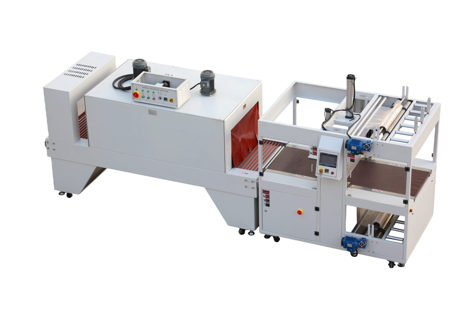 可獨立工作,也可與生產(chǎn)線對接自動進料,裹膜,封切,收縮,冷卻,定型來實現(xiàn)無人化流水作業(yè);