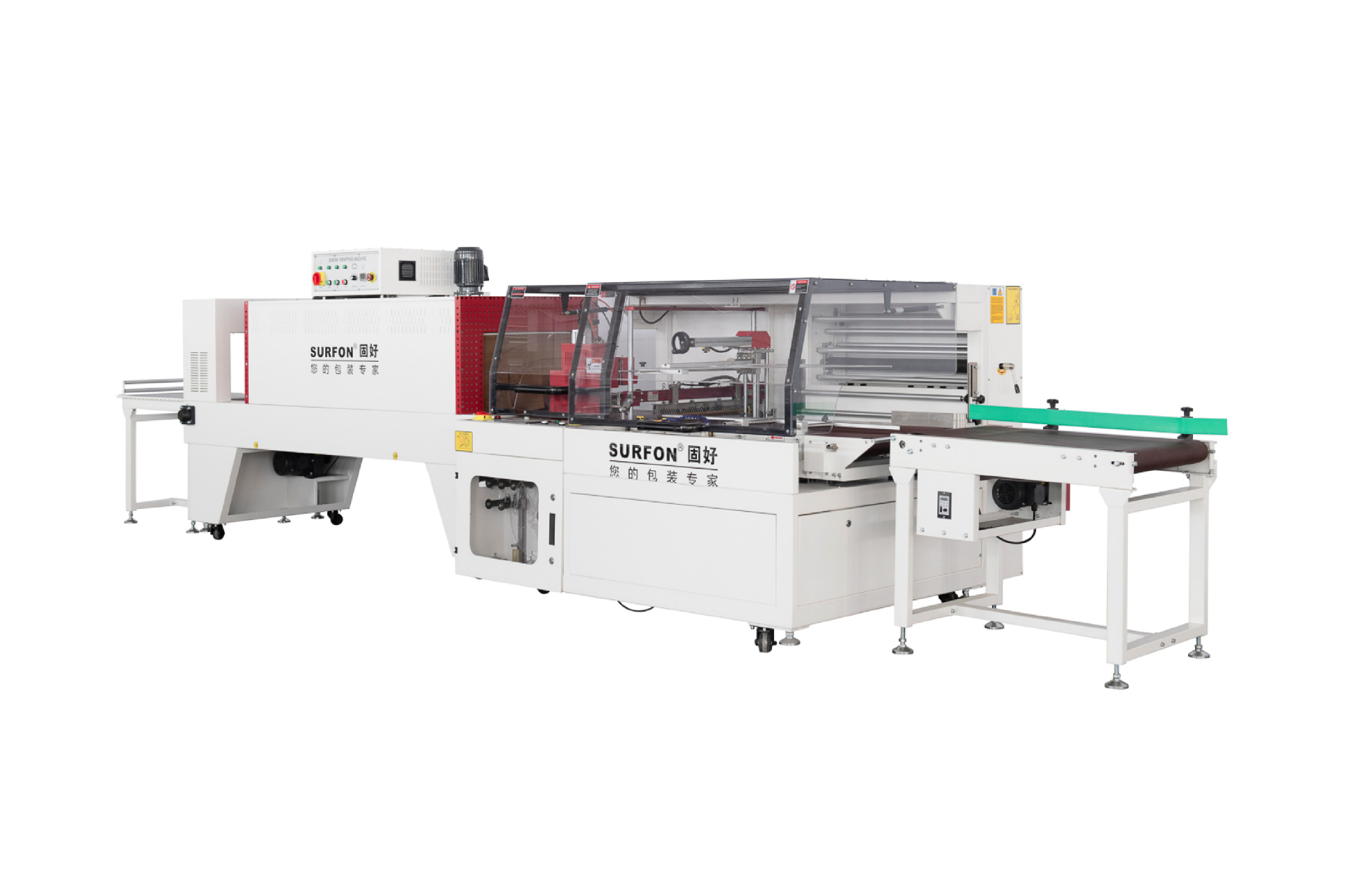 ●配套收縮包裝機SF-15040E采用進口雙運風循環(huán)電機,使爐內(nèi)的熱風散步更均勻達到良好的收縮效果;